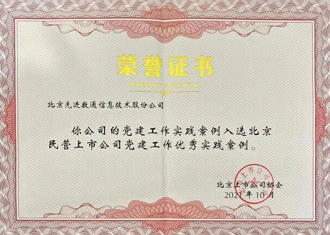 近期,北京上市公司协会授予北京必一运动官网信息技术股份公司荣誉证书,必一运动官网党建工作实践入选北京民营上市公司党建工作优秀实践案例,相关党建活动已收录在《北京民营上市公司党建工作优秀实践案例汇编》。